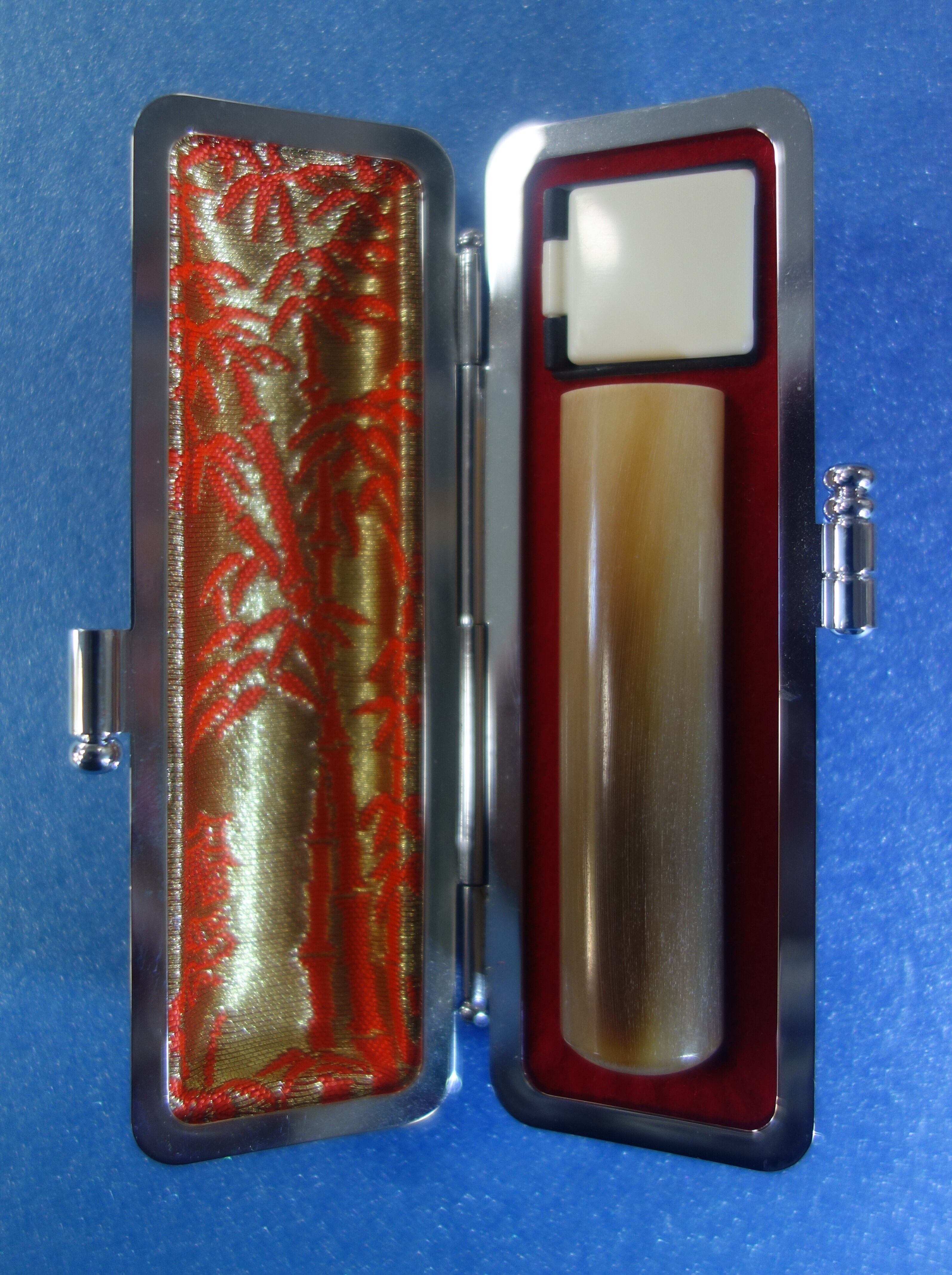 牛角(トビ)芯持 15mm銀行印・認印(姓または名)」 印鑑ケース付き